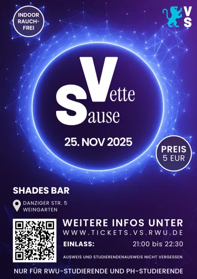 Am 25. November eröffnen wir die Location mit der Vetten Sause – fairer Eintritt, gute Musik und ein Abend, der komplett für RWU- und PH-Studis gedacht ist. 🔥